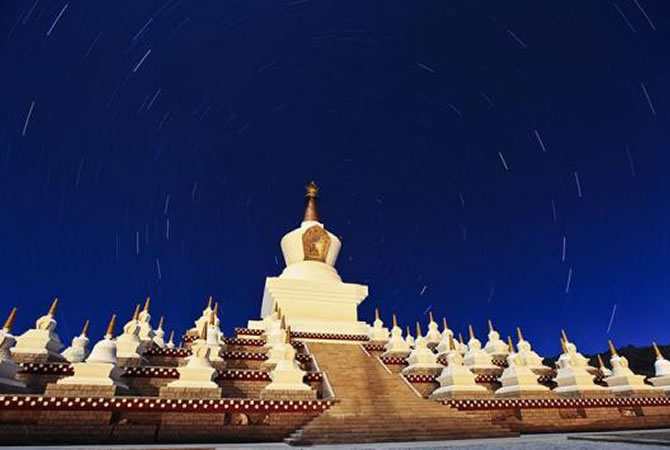 這一天我們的車將行駛在素有“世界屋脊”“世界第三極”的青藏高原。早餐后欣賞“光與影的世界”【新都橋】,翻越【高爾寺山】(海拔4412米),若天氣晴朗,則有幸在山頂一睹蜀山之王【貢嘎山的風(fēng)采】(四川最高峰,海拔7556米,高高的山峰聳立天際,非常的壯觀)抵雅礱江畔康巴小城【雅江】后穿越【剪子彎山隧道】(長228米)接著翻越【卡子拉山】(海拔4718米),來到有著“高原明珠”“世界高城”之稱的【理塘】途中自費(fèi)參加茶馬古道生活體驗(yàn)營或天域牧場(自助石板燒烤、穿藏裝、騎馬)觀【毛埡大草原】風(fēng)光,給你一種想策馬奔騰的感覺,感受了遼闊的大草原,我們將翻越形是兔子的【兔兒山】,遠(yuǎn)觀就像兔子的耳朵特別的可愛。之后翻越最為壯觀的、青藏高原最大的古冰體遺址稻城古冰帽【海子山自然保護(hù)區(qū)】(海拔4500米)。(海子山是由1145個(gè)大小海子和嶙峋怪石組成。猶如上帝失手撒下的一千顆鉆石一般閃爍在山間,其規(guī)模密度為中國乃至世界規(guī)模最大最典型的古冰帽遺跡,精妙絕倫的天然巖畫—鹿子圖騰)。后前往桑堆高原補(bǔ)氧站(高原旅游知識宣傳點(diǎn))時(shí)間10-20分鐘、之后欣賞沿途迷人風(fēng)光、世外桃源般藏式村寨,觀稻城尊勝白塔后,抵達(dá)最后的香巴拉【稻城】。