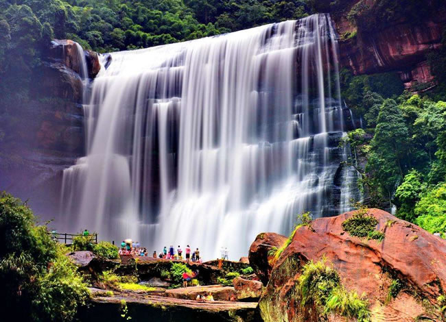 早餐后前往當(dāng)?shù)厣鐣?huì)商品零售企業(yè)自由活動(dòng)并領(lǐng)精美紀(jì)念品,名特產(chǎn)品(較為著名云上赤水泰和乳膠、逸可瑞斯乳膠等,主要銷售乳膠制品),自由活動(dòng)后前往【赤水大瀑布】欣賞美譽(yù)中國(guó)的簾狀瀑布典型代表中洞瀑布。觀氣勢(shì)恢弘的赤水大瀑布(寬81米,高76米),是亞洲最大的瀑布,也是“世界丹霞第一瀑”,瀑水從懸崖絕壁傾瀉而下,猶如萬馬奔騰,聲如雷鳴,水霧彌漫,陽光下時(shí)見彩虹繽紛,在特定的觀景石上,奇妙的佛光環(huán)隨人移動(dòng),一人一環(huán),美不勝收。自由活動(dòng)后乘車前往【白馬溪景區(qū)】(此景點(diǎn)為旅行社贈(zèng)送景點(diǎn),若時(shí)間緊湊無法前往請(qǐng)各位旅客諒解,贈(zèng)送景點(diǎn)不予置換或退費(fèi)),(白馬溪景區(qū)內(nèi)有玻璃橋、旱滑道等娛樂項(xiàng)目,客人可根據(jù)自身情況自愿選擇自己喜歡的項(xiàng)目參加,報(bào)價(jià)不含娛樂項(xiàng)目)赤水白馬溪景區(qū)是赤水唯一家主題景區(qū),景區(qū)集有赤水旅游的5大旅游元素;瀑布景觀、丹霞景觀、竹林景觀、石斛觀光、以及活化石桫欏樹。景區(qū)原生植被繁茂,景色怡人,環(huán)境絕佳。是旅游觀光的絕佳勝地,晚餐可自費(fèi)品嘗(苗家風(fēng)情晚會(huì)120元/人),同時(shí)觀賞苗家印象激情互動(dòng)篝火晚會(huì),或自由活動(dòng)。酒店休息。